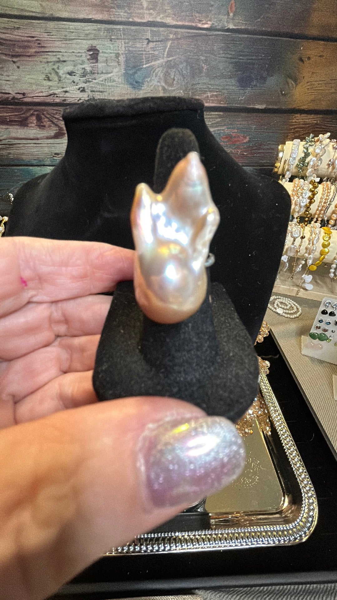 Large pink solitaire ring