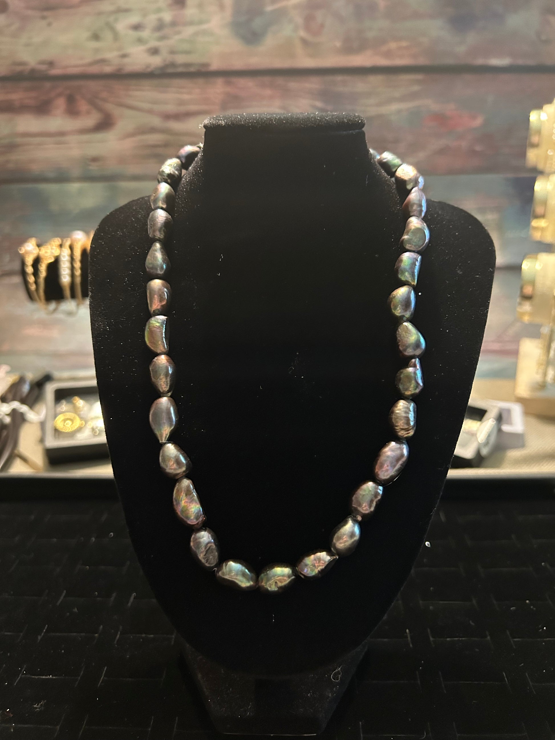 Full medium sized baroque green & purple hued necklace