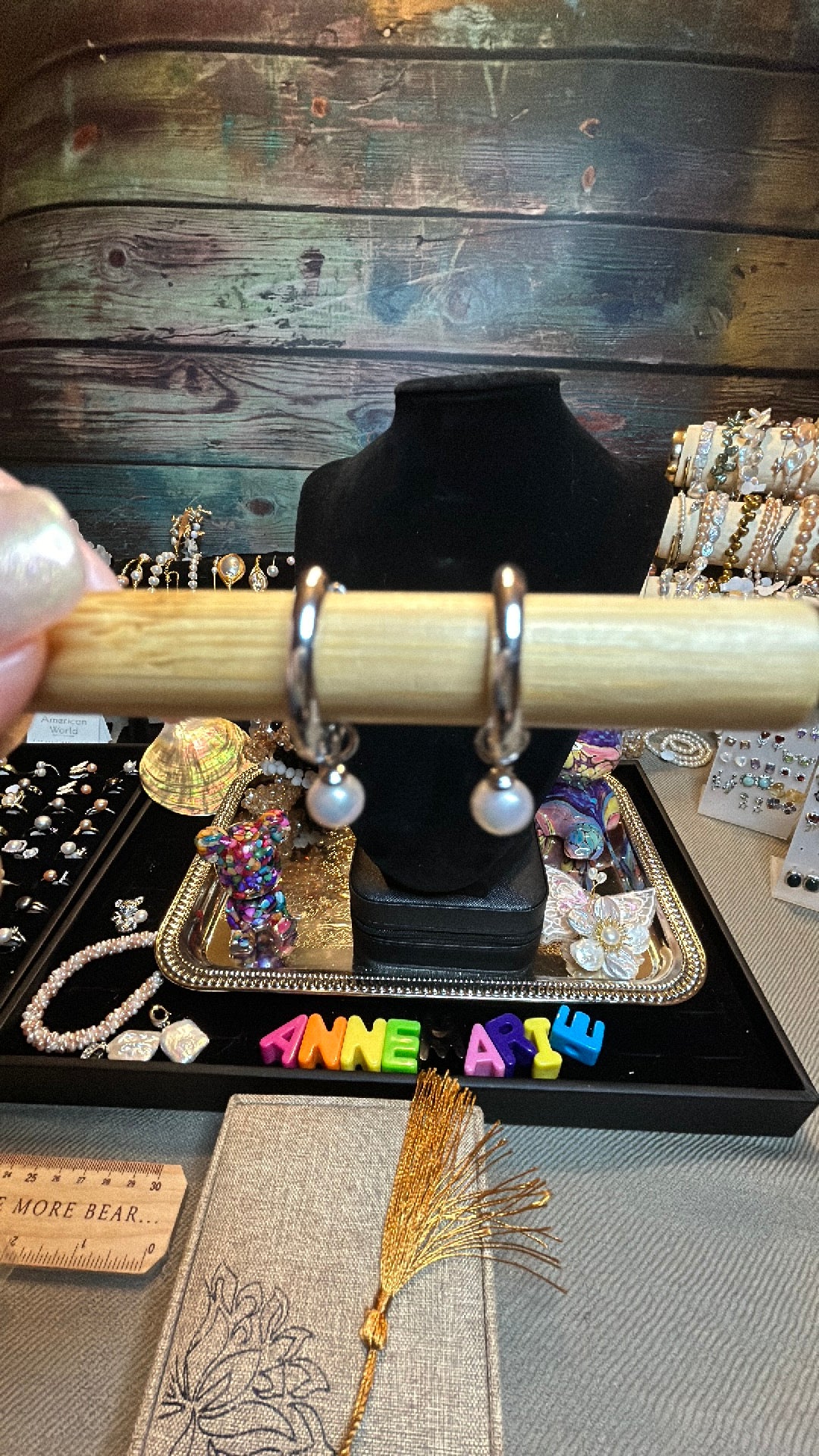 Silver hoop earrings with freshwater pearls