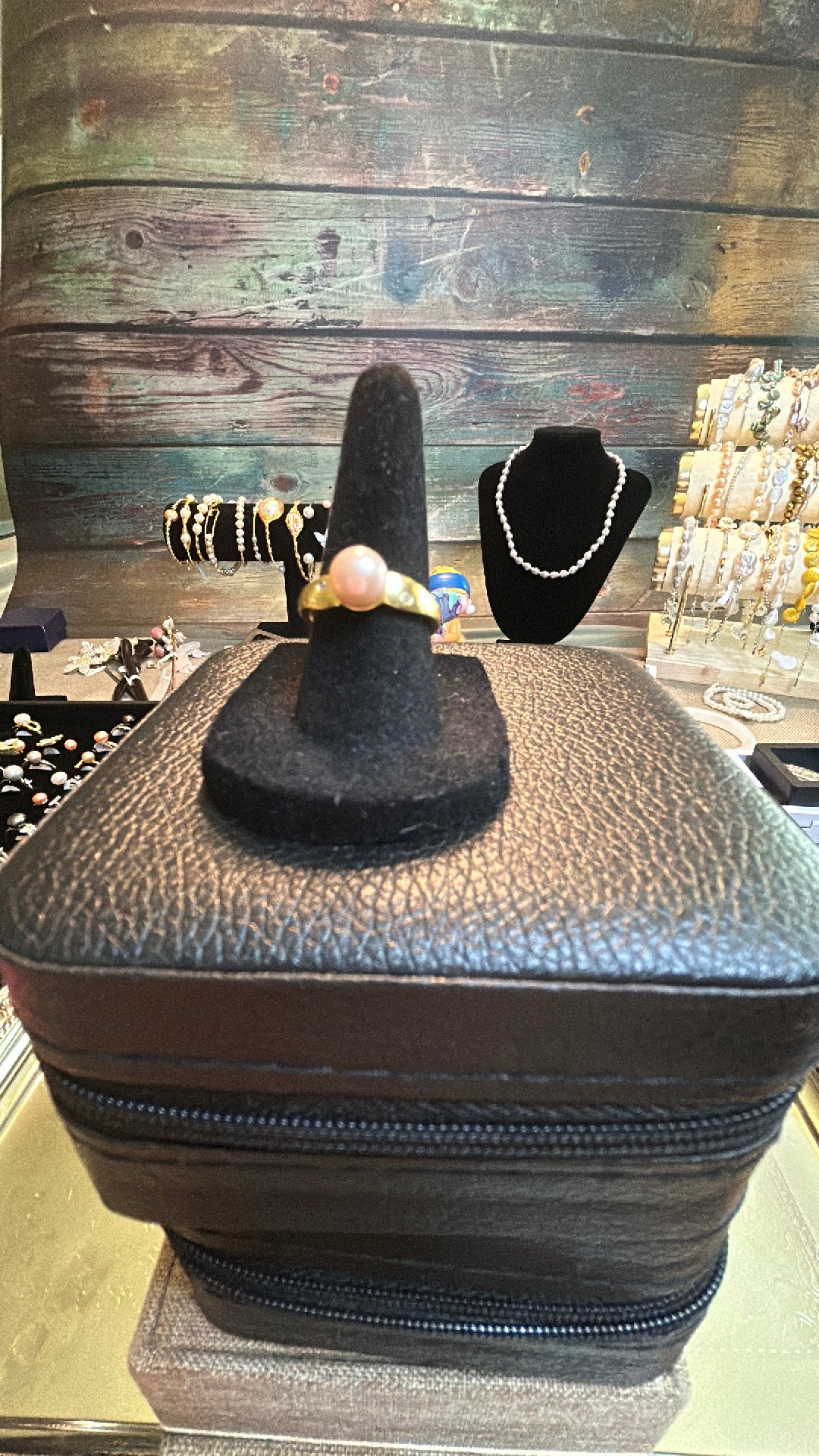 Single pink freshwater pearl ring adjustable